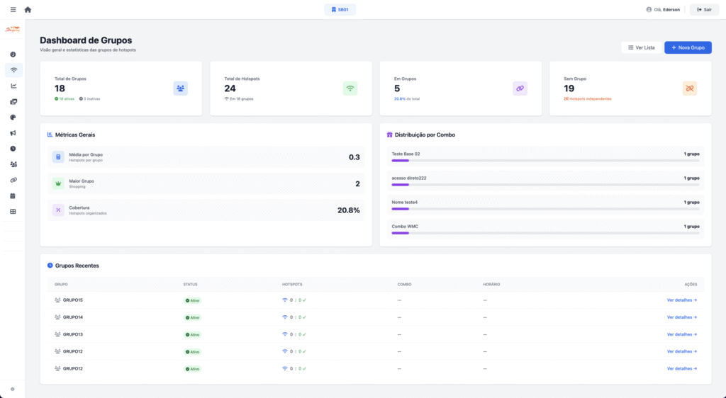 Gestão completa de usuários com contas individuais, controle de velocidade, logs de cada conexão e ativação/desativação instantânea. Portaria, funcionários, moradores, visitantes e prestadores: cada um com seu perfil. 100% em nuvem, sem servidores locais.