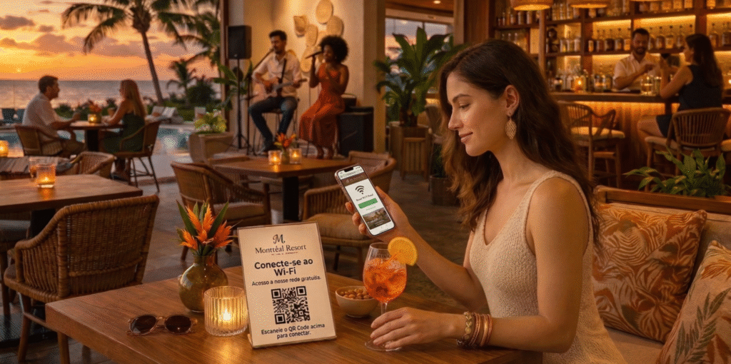 O WiFi 360 pode ser integrado ao sistema de gestão do hotel para enriquecer a experiência do hóspede e simplificar o acesso.