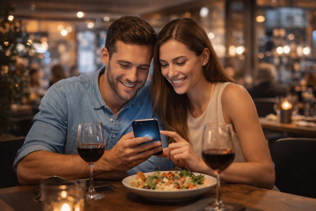 Dispositivo X, conectado no hotspot do estabelecimento, conta: Maria Santos, CPF verificado.
