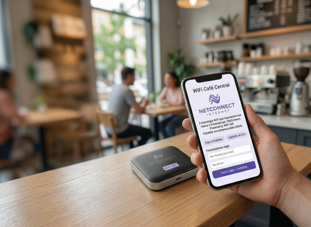 Seu cliente só vê sua marca em casa. Com hotspots WiFi Full, ele encontra você na academia, no restaurante, no clube, na clínica. Cada hotspot é um ponto de marketing da sua marca, com portal personalizado, captação de leads verificados e logs completos. Integração gratuita com seu sistema de gestão. 100% em nuvem.